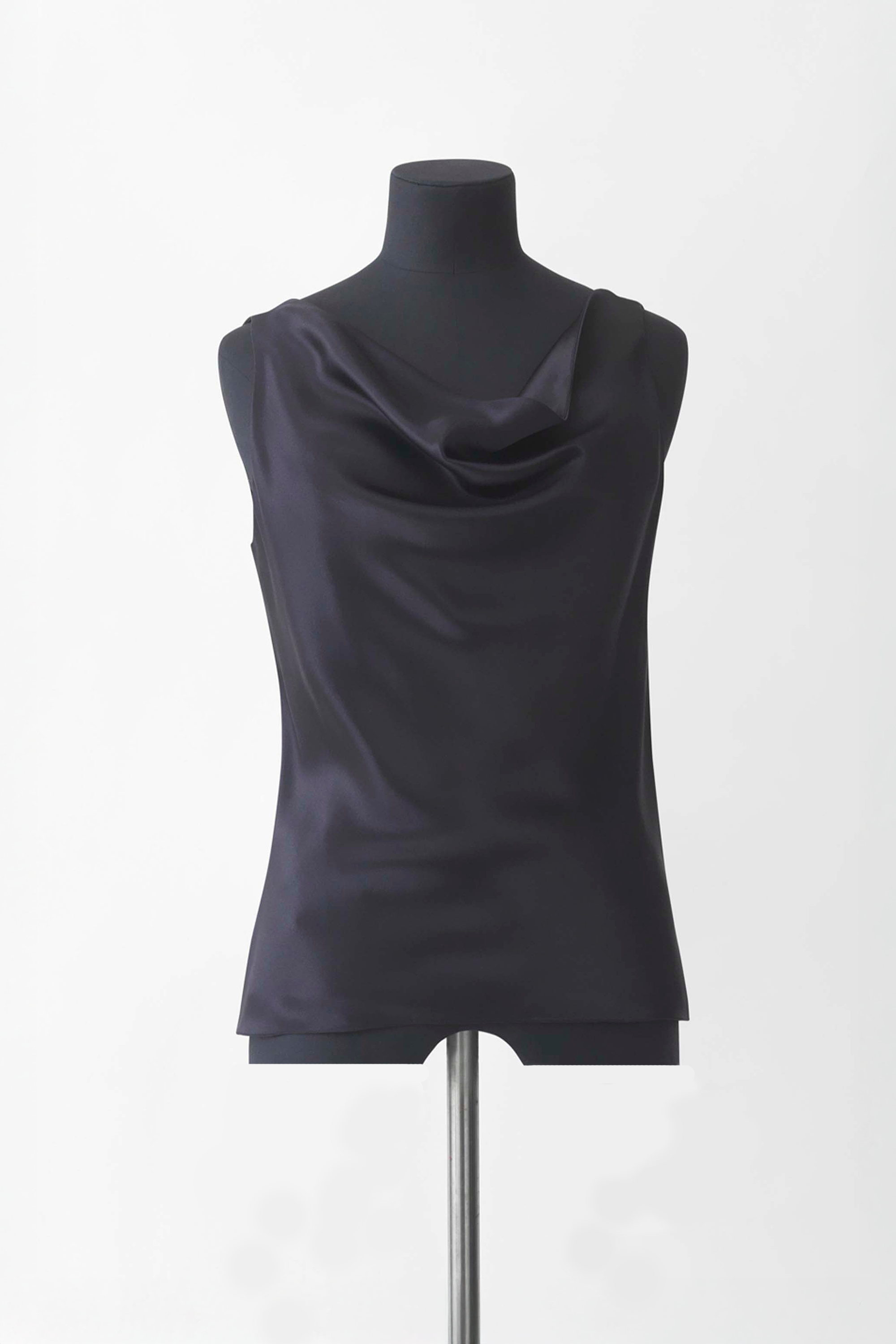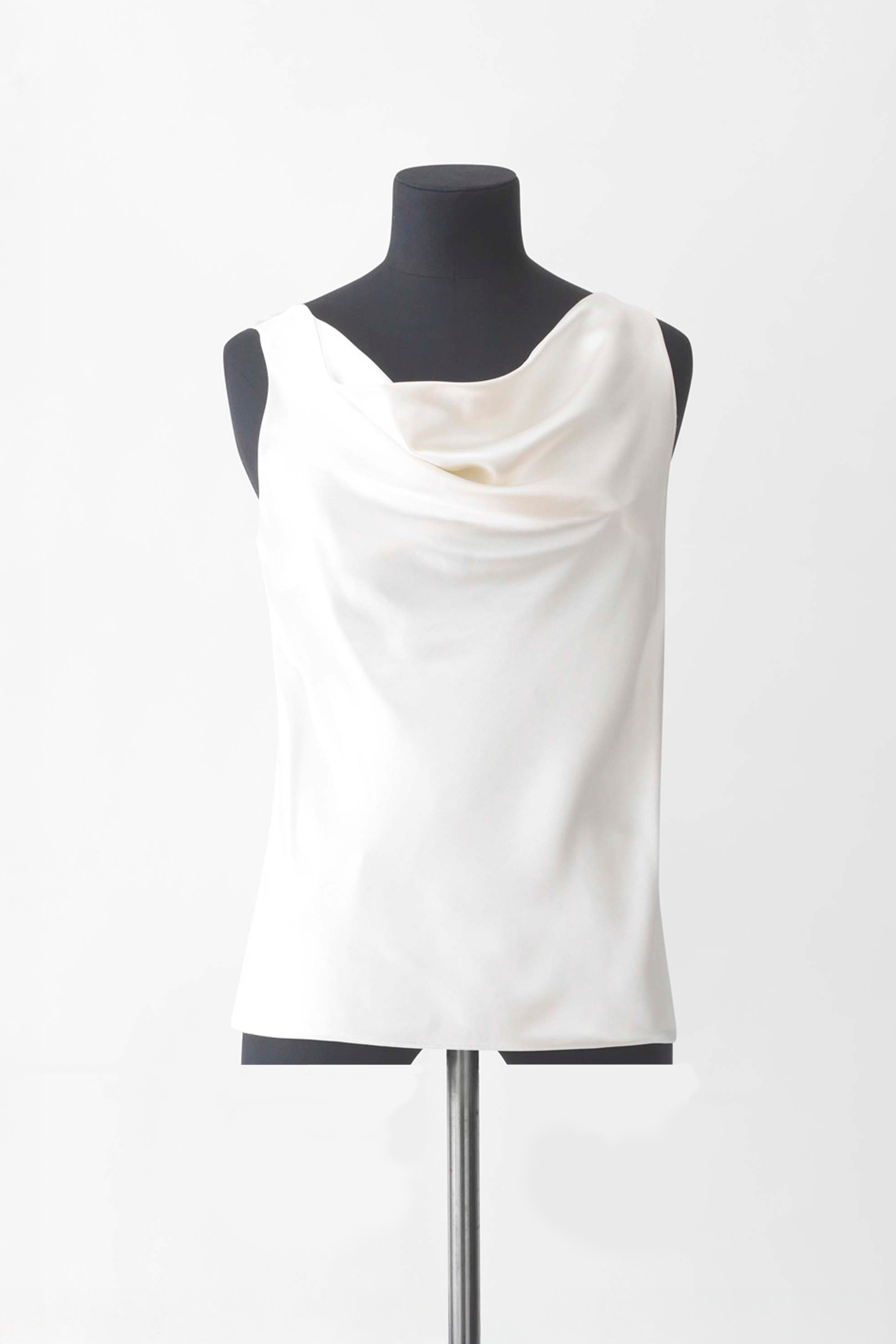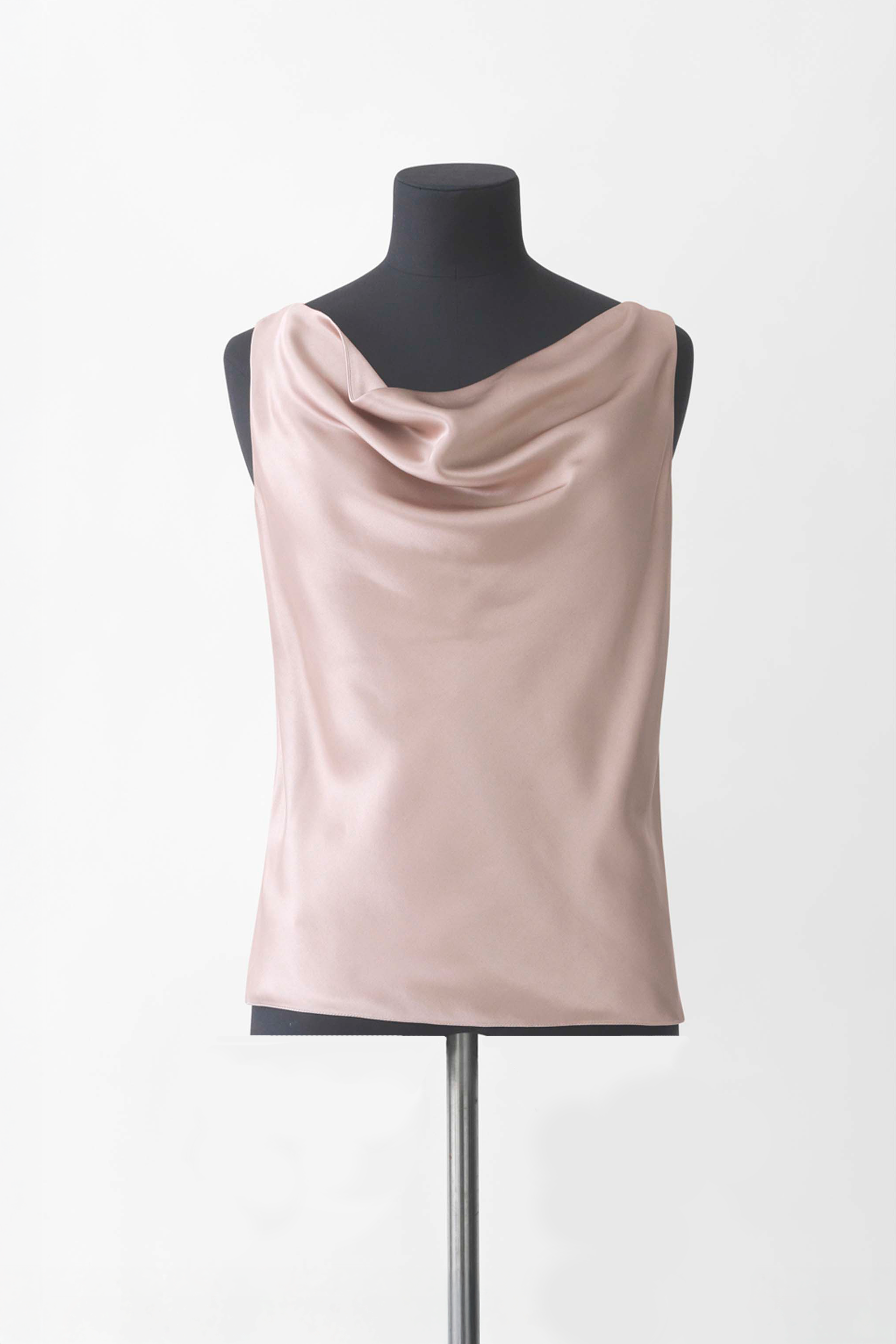 Our draped neck silk top is an invitation to elegance — fluid, sensual, and infinitely refined. Cut from luxurious silk satin, it balances structure and softness with wide straps and a neckline made to mesmerize — from day to evening.