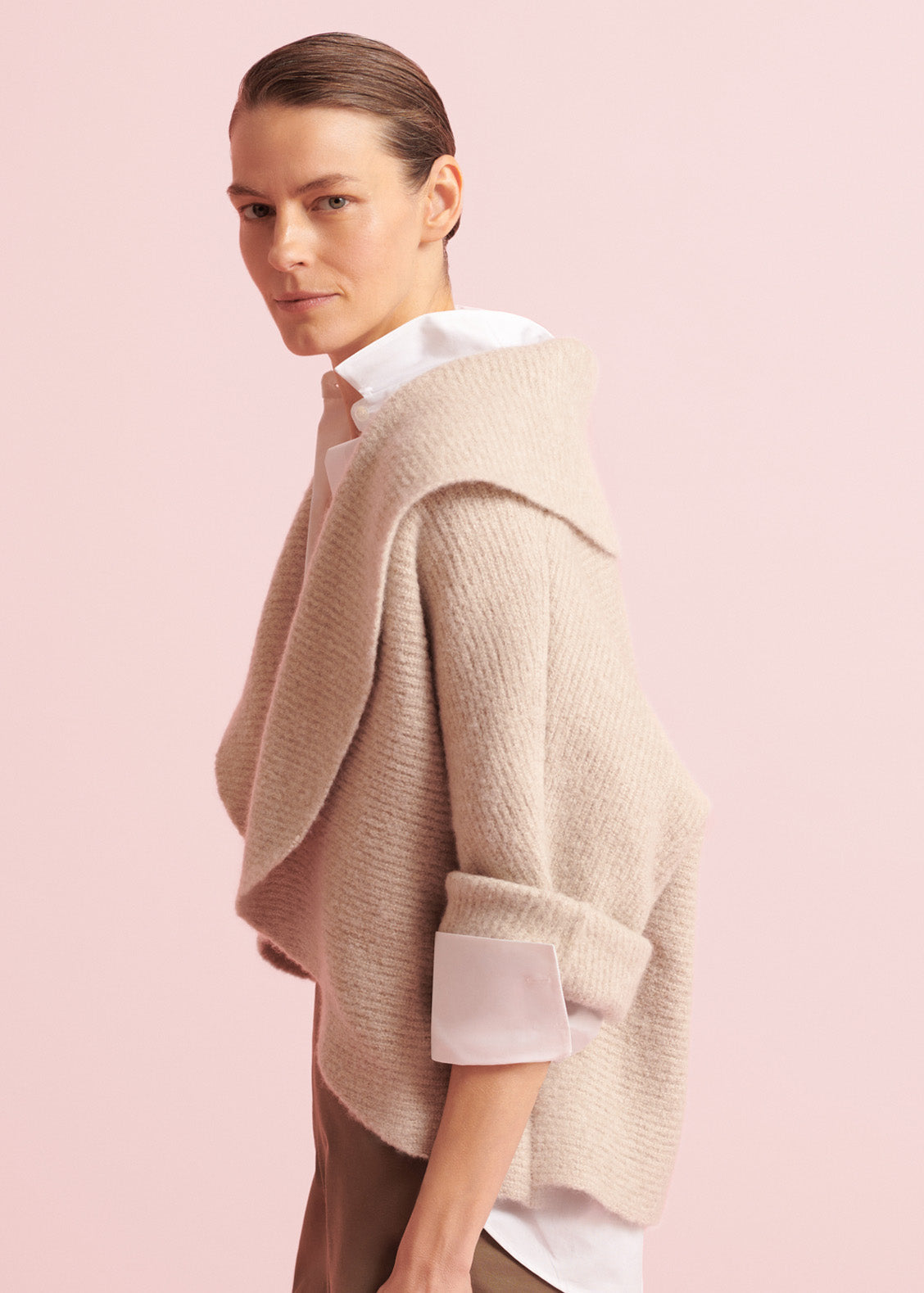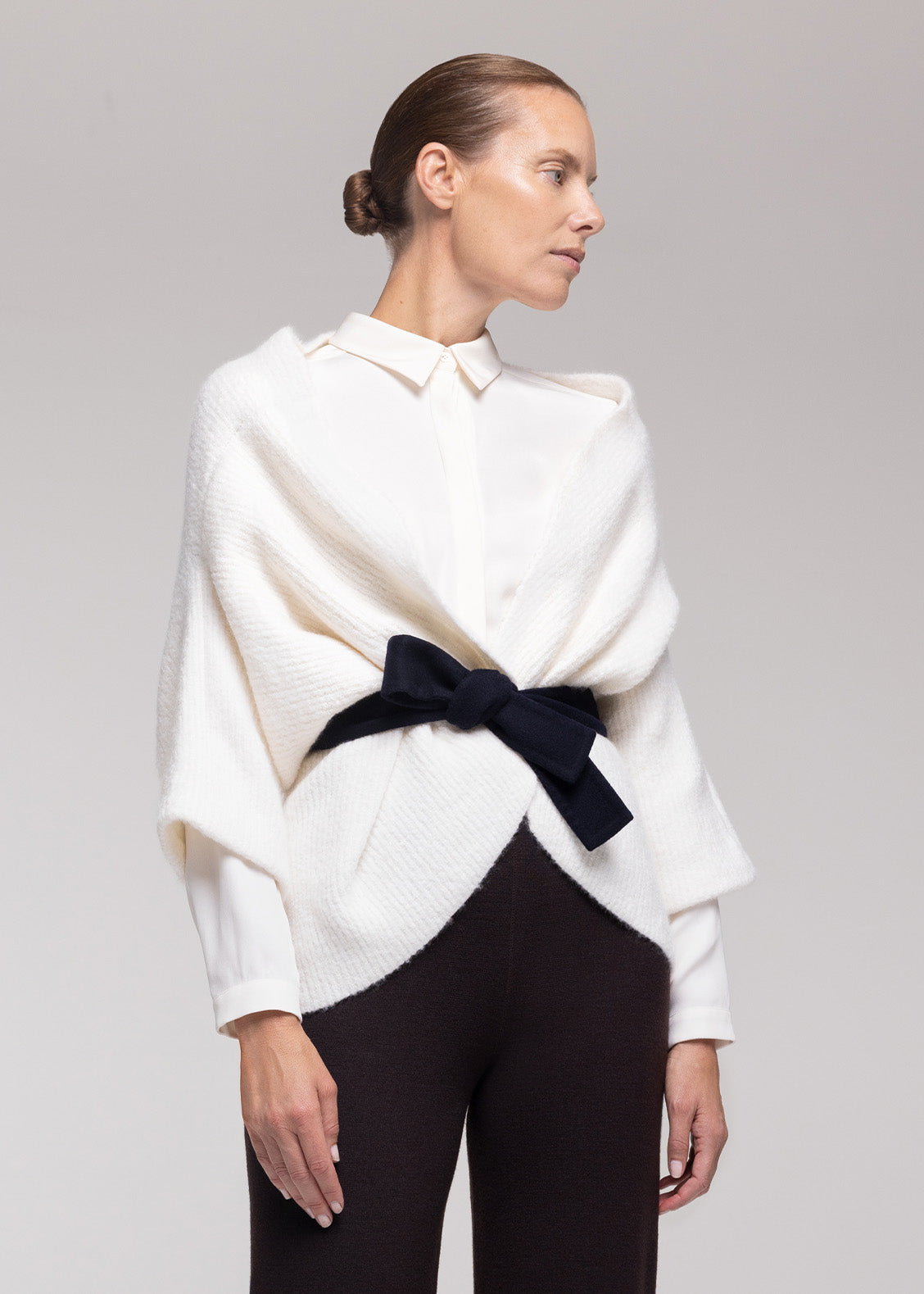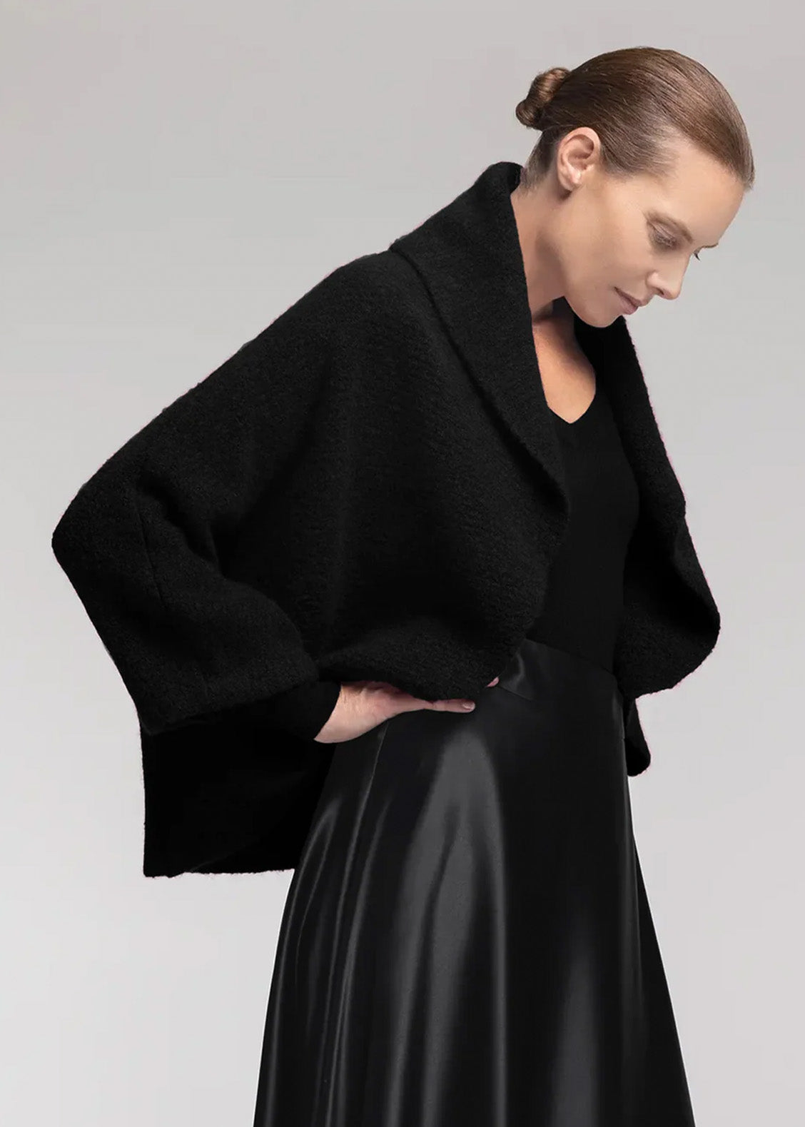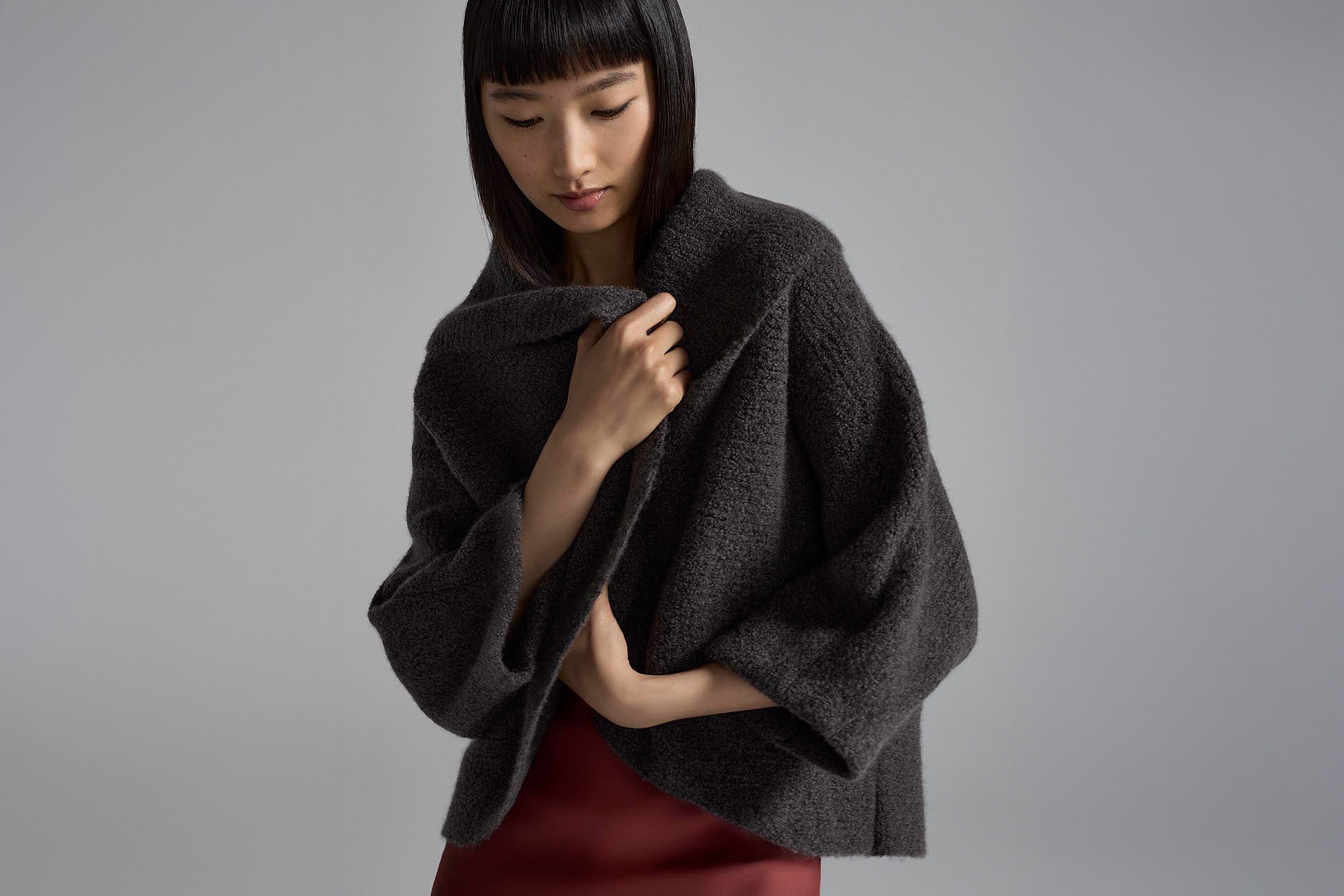 Wrap yourself in softness with the Bouclé Cloud Cardigan. Wear it loose in an elegant opera-style drape or wear it elongated for a more sculpted silhouette.