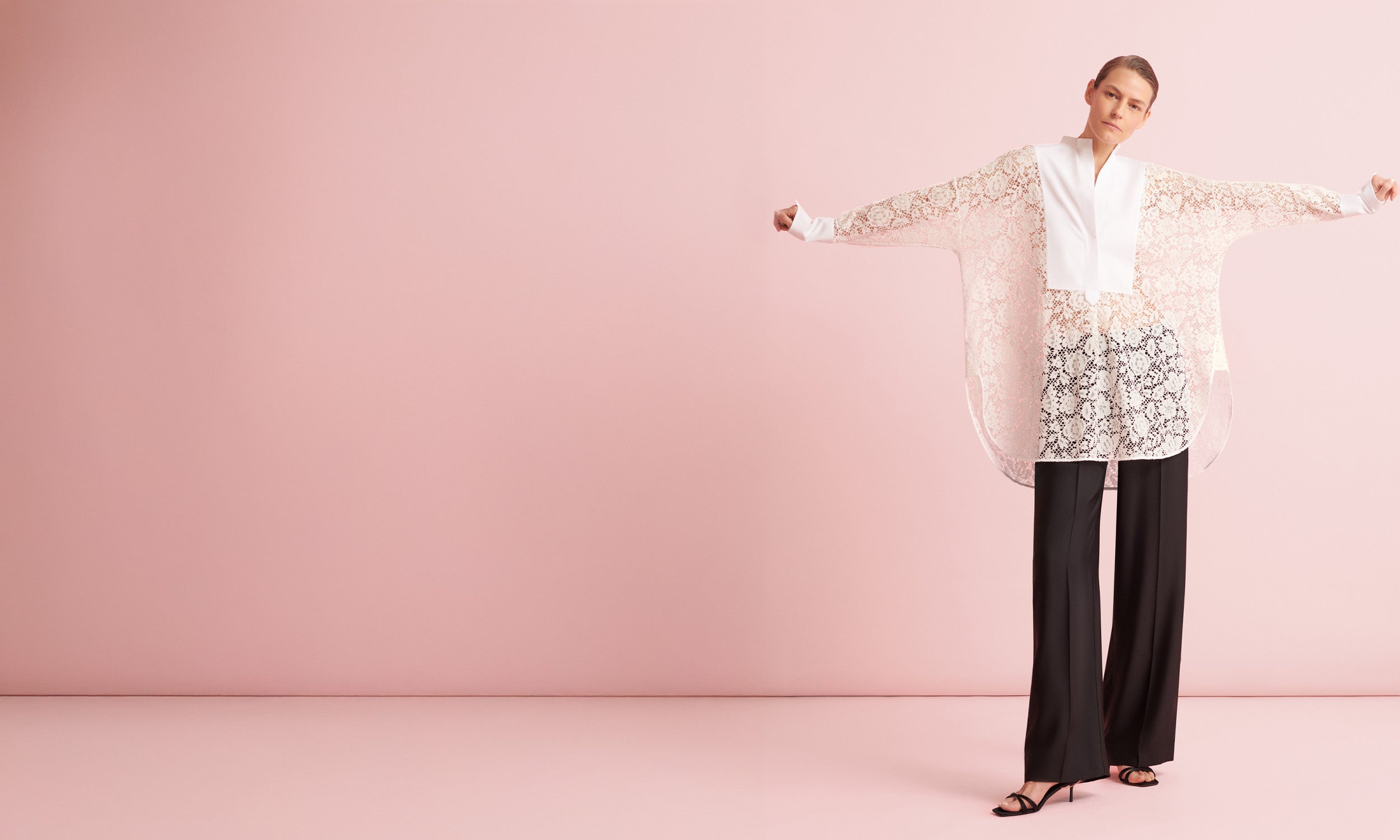 A timeless standout, this French lace tunic captures effortless grace with its delicate front bib and subtly elongated back. Light yet refined, its airy silhouette drapes beautifully—equally suited to elegant layering or standalone statement. From daytime ease to evening polish, it brings quiet sophistication to every moment.