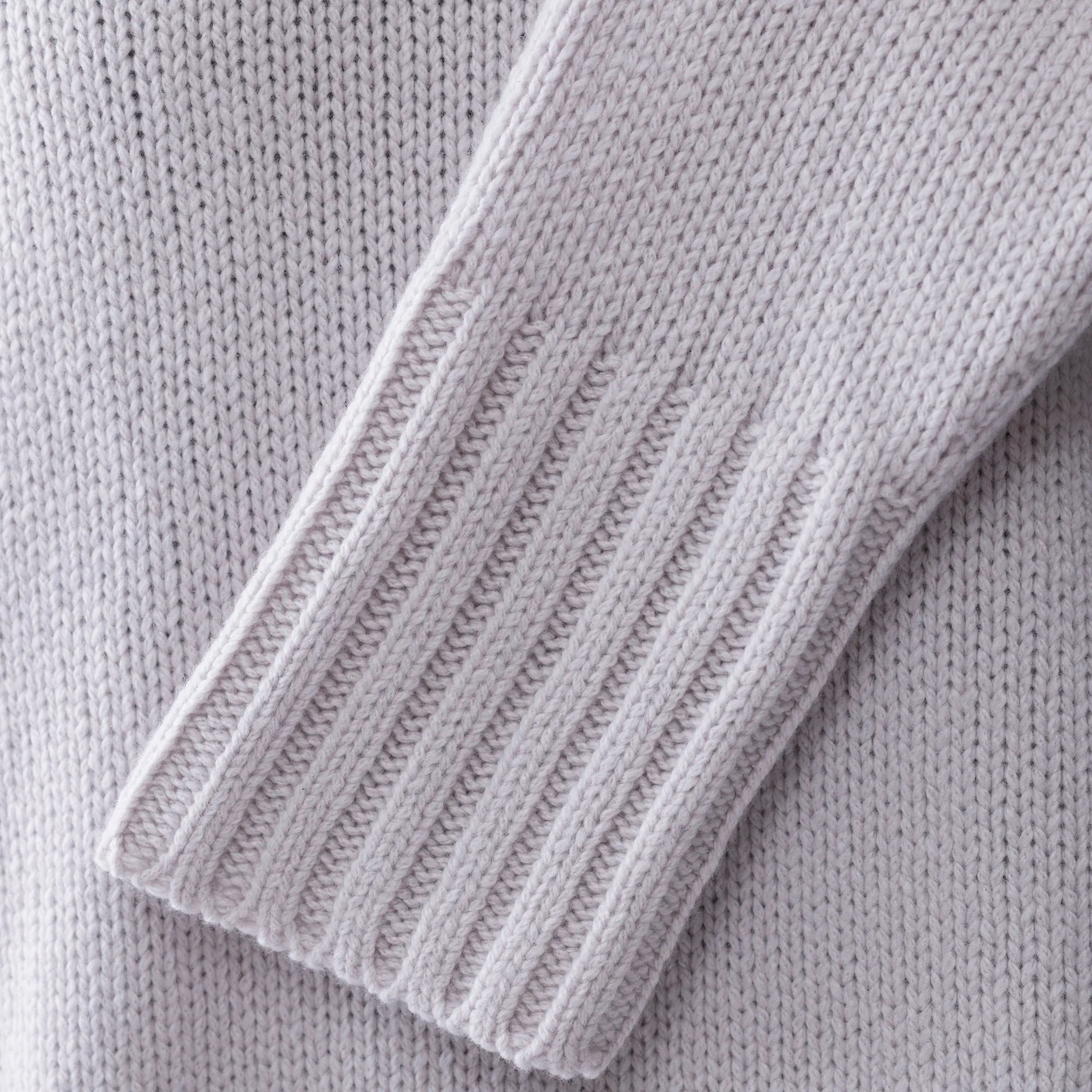 - 2x2 rib around the collar, hem, and cuffs