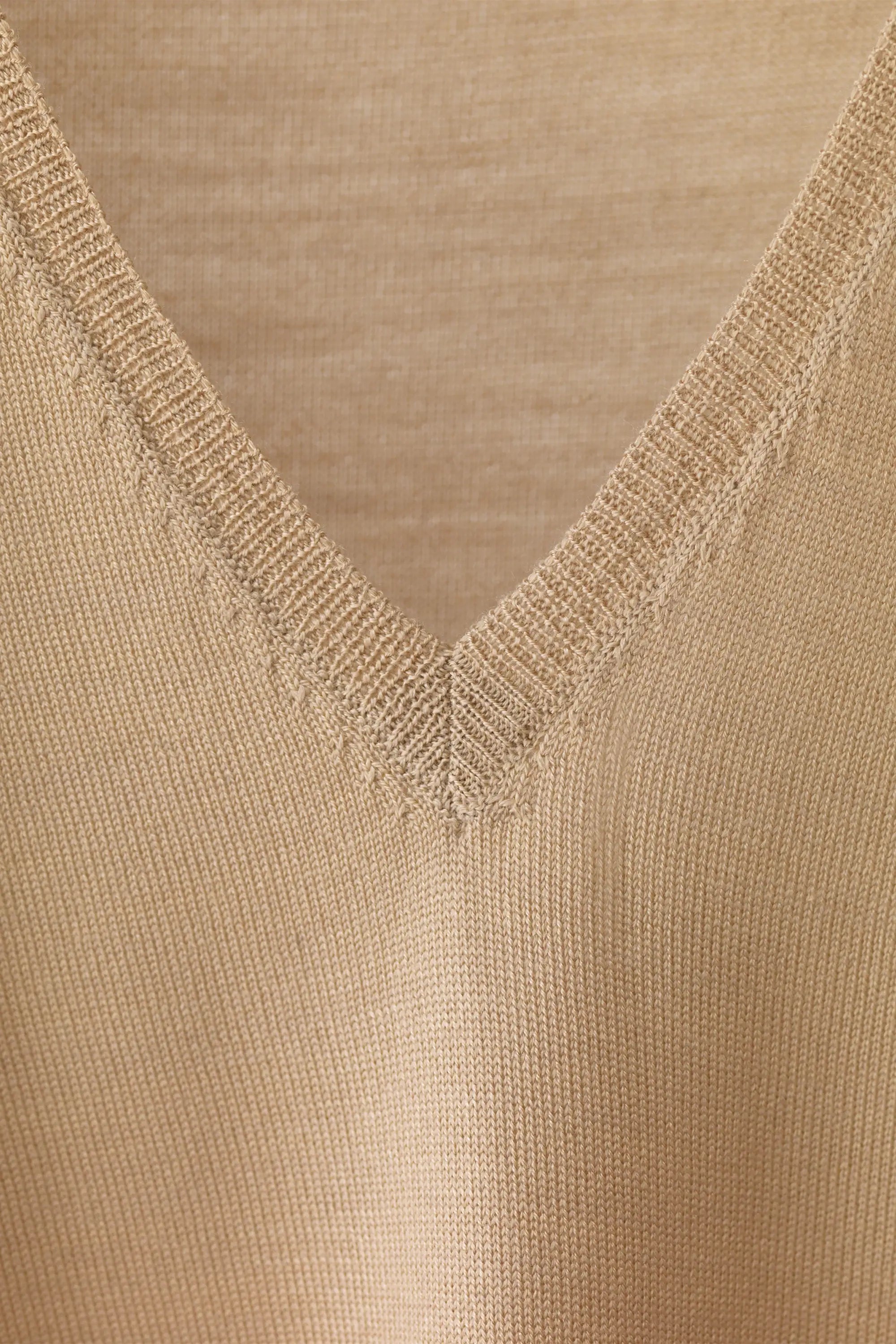 Just like our long sleeve wool silk V-neck pullover, our short-sleeved version is ideal for transitional weather. This perfect V-neck top boasts a neckline cut to flatter - not too high, not too low. It includes our signature dropped shoulder and shorter sleeves with a ribbed finish that falls just above the elbow. The coordinating ribbed hem gives a fitted finish with the looser-fit body, allowing for easy tucking or wearing untucked.